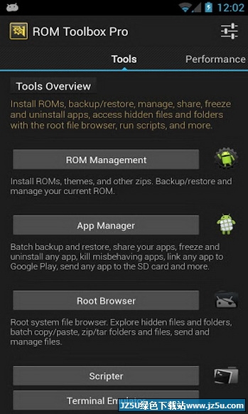ROM工具箱(ROM Toolbox Pro)是一款运行在安卓平台上的安卓系统管理工具,ROM Toolbox Pro功能非常强大,需要注意的是,目前ROM Toolbox Pro支持绝大多数机型,且需要ROOT权限!