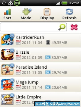 * 六排序选项:名称↑/名称↓/大小↑/大小↓/安装日期↑/安装日期↓