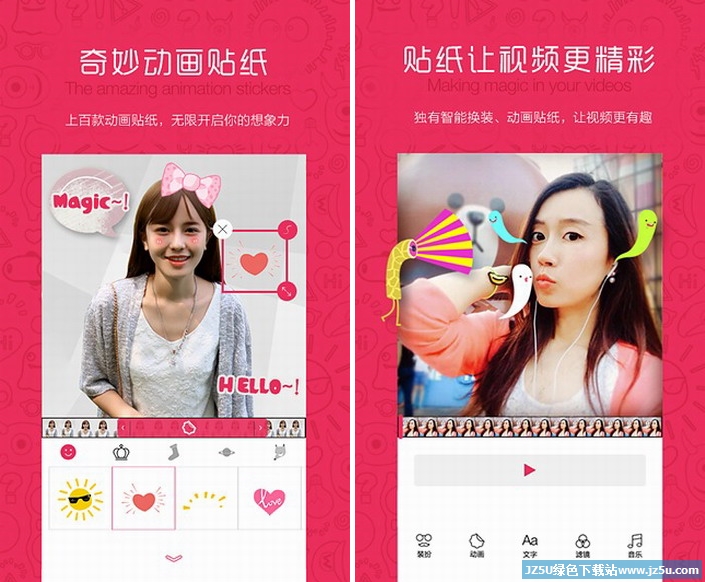 上百款精美动画贴纸,让你拍出来的视频萌萌哒。小猫、小王子、外星人陪你玩转不一样的视频!