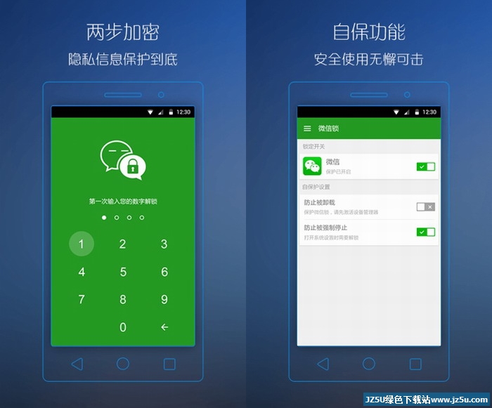 微信锁专注微信,保护6亿用户隐私,对微信隐私实现前锁未有的保护。有了微信锁,当亲朋好友、同事要玩你手机时,再也不用担心隐私信息会在不经意间泄露!