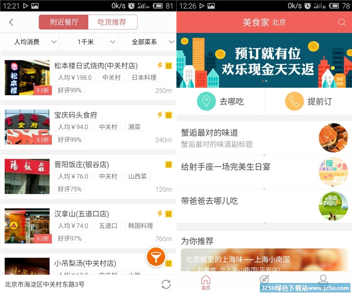 美食家预订餐厅不排队.实时掌握餐厅桌位菜品信息,订桌,点菜,到店即食;