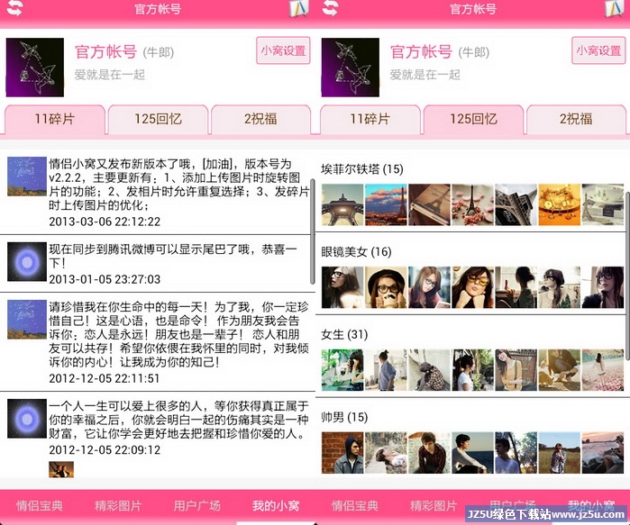 7.消息通知,在您或对方有了更新后,另一半的手机就会收到短信音的提示(这个是可以设置的,是否提示,多久提示,按时段提示),方便快捷,连短信费都省了;