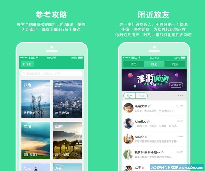附近的人:开启地图与列表模式,显示所在地的用户,可以开启聊天,查看所在地用户的游记,照片等,知趣相同不如约游,让旅行热闹起来。
