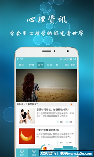 2.心理资讯:海量心理资讯强大的编辑团队整合国内外优质的心理健康文章,包含育儿,两性,情感,职场,教育,疗愈,社会等等各领域心灵鸡汤。