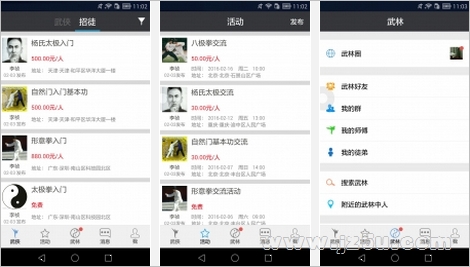 武林汇app为武术爱好者提供拜师招徒、活动交流、赛事训练、武术社交、招聘就业等功能的应用,致力于推动武术的传播和传承,成为全世界武术爱好者汇聚、交互、交流学习的平台。