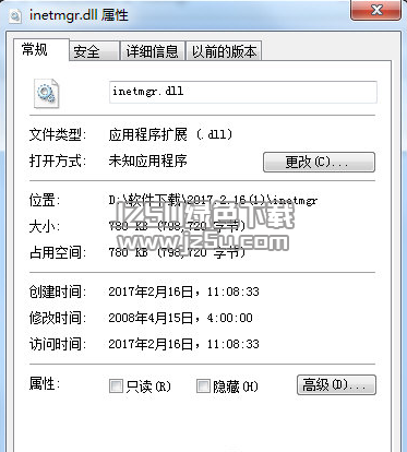 1、解压下载的文件; 2、复制文件inetmgr.dll到系统目录下; 3、系统目录一般为:C:\WINNT\System32 64位系统为C:\Windows\SysWOW64; 4、最后点击开始菜单-->运行-->输入regsvr32 inetmgr.dll后,回车即可解决错误提示。