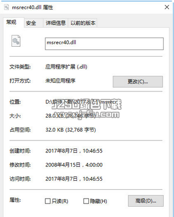 msrecr40.dll是存放在windows系统中的一个不可缺少dll文件。msrecr40.dll文件很重要,绿色,缺少它就会造成部分软件或游戏不能正常运行。当用户的电脑弹出提示无法找到msrecr40.dll或计算机缺少msrecr40.dll等错误问题,请本站为你提供的dll文件,使用它可以帮助用户解决上述问题。欢迎大家来jz5u体验!