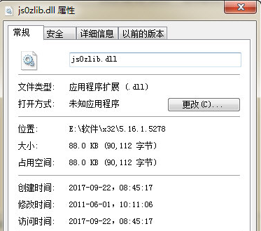 打开"开始-运行-输入regsvr32 js0zlib.dll",回车即可解决。