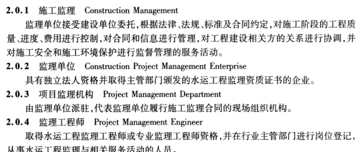 本规范修订的主编单位为北京水规院京华工程管理有限公司和天津中北港湾工程建设监理有限公司,参编单位有交通运输部安全与质量监督管理司、广州南华工程管理有限公司、广西八桂工程监理咨询有限公司、广州海建工程咨询有限公司、山东港通工程管理咨询有限公司、长江航务工程质量监督中心站和深圳海勤工程管理有限公司。