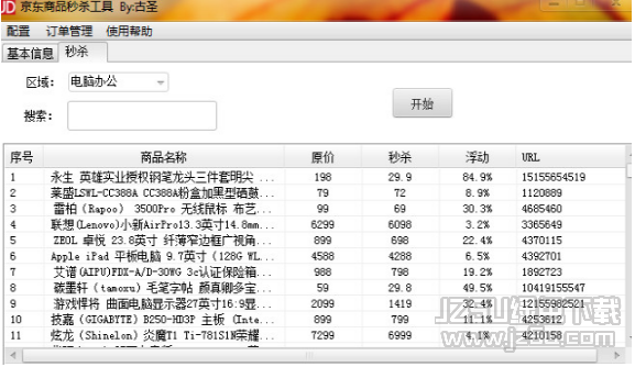 古圣双十一京东商品秒杀工具是一款非常实用的京东商品秒杀工具。想要在京东秒杀到物品,真是比登天还难,这款软件能解决烦恼,软件可以显示商品的基本信息,防止秒杀错误,还可以根据商品的类型搜索相关的商品。软件操作界面简单,即使是新手用户也可以很快上手,如果您有需要可以在jz5u下载这款古圣双十一京东商品秒杀工具。