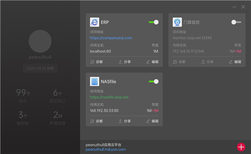 花生壳动态域名解析是一款非常方便好用的域名解析服务工具,这里能为你带来一个更好的动态IP的分析和查询服务,这里能去帮助你轻松的将所有IP查询资料可以帮助你将数据传输到服务器的主机程序之中,更多的优质动态域名分析可以让你去找到一个优质服务方式,所有网络状态都能去轻松的查看。