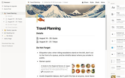 Notion是一款非常方便实用的全功能笔记工具,这里可以为你带来更加方便实用的云笔记记录软件,带你重新定义一个更加方便的笔记和知识库与任务管理结合的方便协作服务平台,这里能去更好的让你轻松管理笔记之中的内容,你还能去进行嵌入你需要的图片和网页甚至是文档视频全都可以加入,让你能有一个最丰富的文档使用体验。