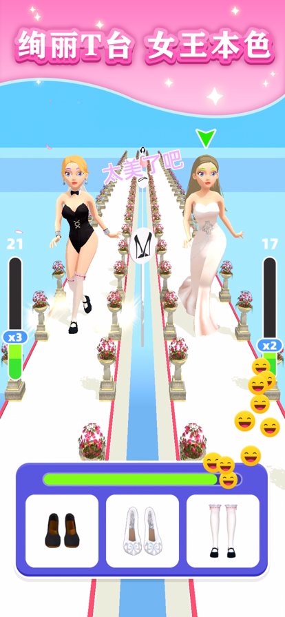1、你的目标是成为亮眼的走秀女王,选择漂亮的衣服,击败你的对手!