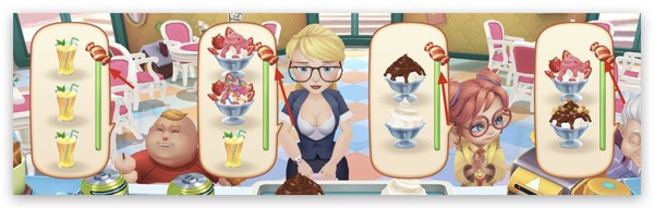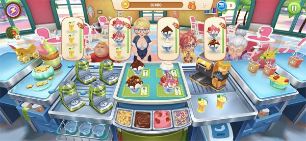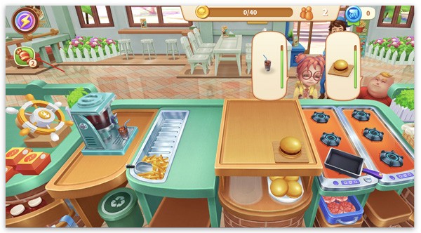 细心地玩家可能已经发现了,在文中的第一张图中,已经把糖给了顾客,所以,才能放肆的进行'连连上菜'!