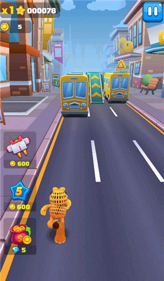 加菲猫跑酷以经典动画加菲猫为基础,成功地将这一受欢迎的IP融入了跑酷游戏的框架中。游戏的亮点在于对经典角色和场景的还原,让玩家在游戏中感受到与动画一样的轻松愉快氛围。游戏成功还原了加菲猫中的角色,每个角色都有独特的技能,例如加菲猫可以飞行,主人乔恩则具备冲刺能力。这不仅增加了游戏的策略性,也让玩家能够选择适合自己风格的角色进行游戏。