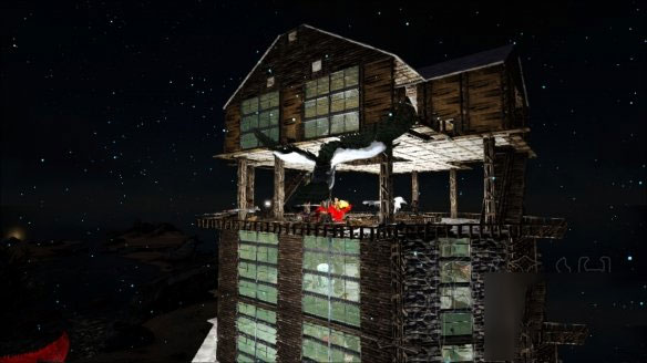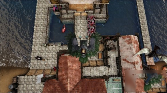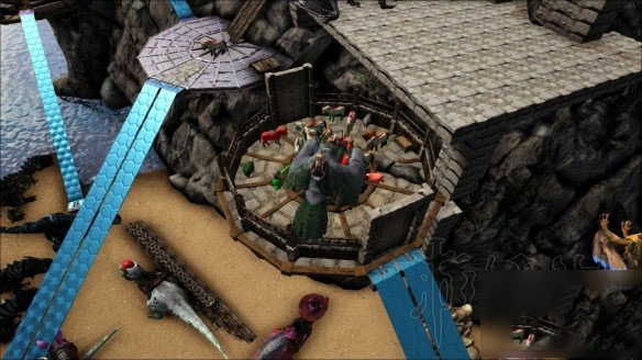 我在圈出来的小水池里养了一只伪齿鸟。可以骑着它到海面上去钓鱼。