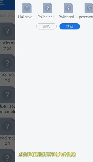 1、首先需要下载好甜瓜游乐场自带模组国际服,将文件使用“ES浏览器”打开,然后复制全部模组,打开文件我们可以看到4个模组,点击复制全选。