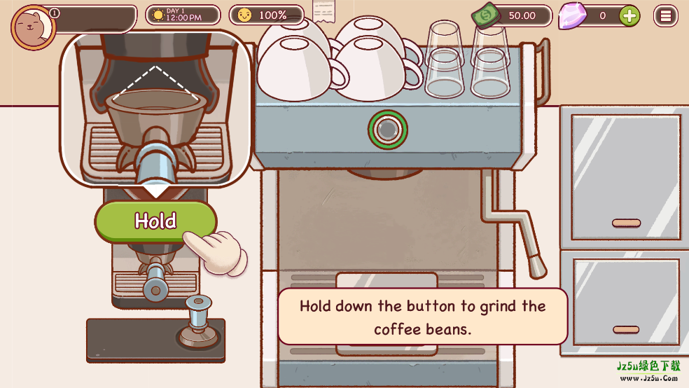 1、玩家需要在厨房用咖啡机为顾客制作咖啡