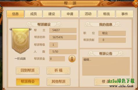 玩家可以在帮派界面查看一些基本信息,界面如下: