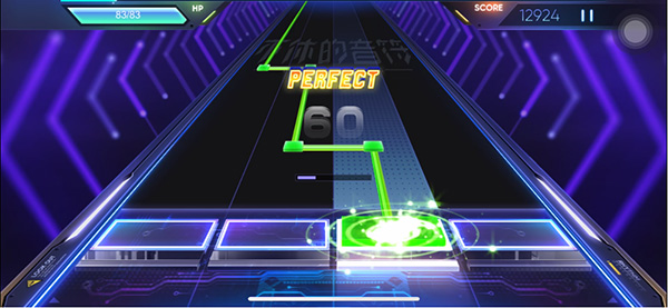 2、看到前方有音符出现,一定要及时点击屏幕改变小球的位置,才能获得“完美”。