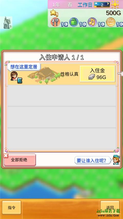 4、居民管理至关重要:他们会提出就业、参赛或新建筑构想。定期查看居民状态,频繁使用“特别措施”中的联谊功能,促成情侣结婚同居,合并存款总额。婚后生育的孩子将成为新一代高阶居民,且直接入住豪宅。若长期无子嗣,后期将面临人口停滞、等级偏低、租金低迷等问题。