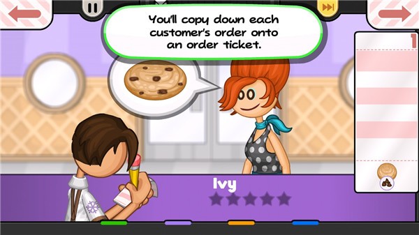 1、*了解经营流程。按照取单-做品-送货的顺序逐步操作,注意不同订单会有不同的要求。[任务讲解]中会介绍到一些特殊要求,需要特别留意这些提示来满足顾客需求。