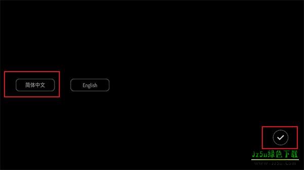 1、进入到游戏的场景内之后,玩家首先需要进行语言的选择,可以点击【简体中文】按钮,并点击屏幕右下角的【√】号;