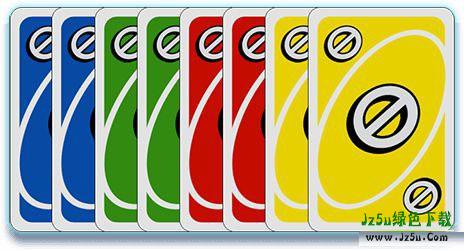 普通牌由红、黄、蓝、绿4种颜色组成,每种颜色都拥有数字为0~9的牌,每种颜色有19张:1~9数字牌每种颜色各两张,0数字牌每种颜色只有一张,共76张。这些牌上的数字将成为结束时记分的依据。