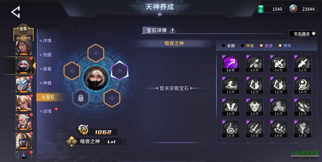 天神除了本身的养成以外,还能进行神器的养成。神器解锁需要对应的天神神器碎片,在支线关卡中可以获得。神器本身能够升级,升级将会增加天神的伤害并且还会增加神器本身的宝石插槽!
