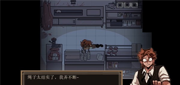 4. 烧毁绳子,先使用左上角的机器把肉剔出骨头,再把右下角的面粉拿到右上角的货架垫高,然后把骨头塞进风扇,这样就能成功逃脱啦,走到厨房右边盘子处还会触发对话,老板也会随之而来。