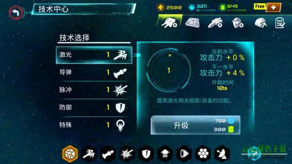 技术选择的游戏的关键,-其中不但包含了激光、导弹、脉冲、防御、特殊等要素,且每个模块下所分属的要素十分多样,但无疑能够使你强大的一大助力。