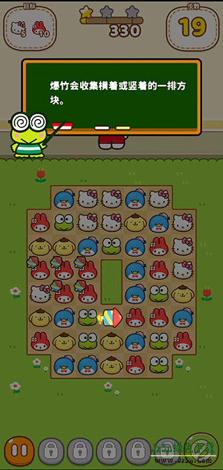 2、请点击两个以上连在一起的hello kitty方块,将其消除。