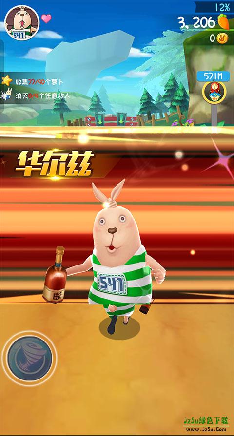 在躲避警察追捕的同时,玩家需要沿途收集胡萝卜、金币和糕点等道具。收集元素不仅增加了闯关的趣味性,也为重复挑战关卡提供了动力。