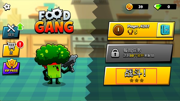 点击【战斗】匹配对战,积累奖杯解锁每周任务(需50奖杯)。