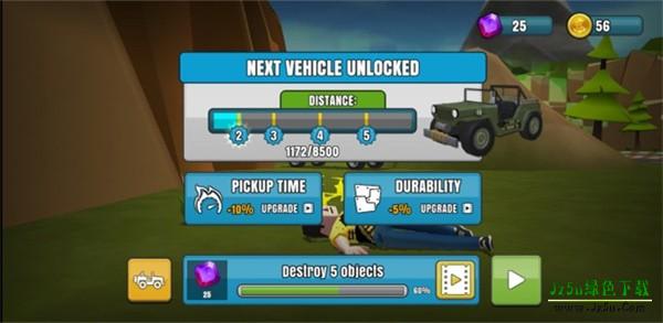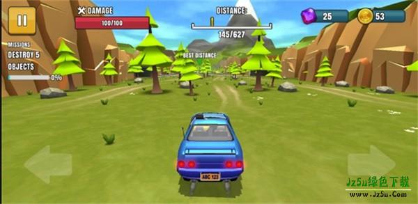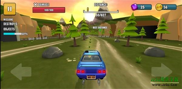3、游戏计分有两个:一个是车辆行驶的距离,另一个是玩家撞车后菲利飞出去的距离。