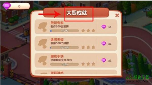 8、有一个【大厨成就】,完成后,可以获得钻石,为后续的升级特别有帮助