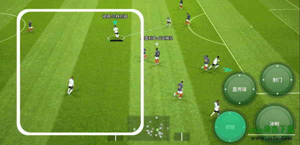 手动前插按下传球键后,向任意方向轻拂画面左侧,传球队员会沿直线向对方球门快速插上,这时可以打出二过一配合,而当球员拥有【单触传球】时,球员间的快速传接会更加精准