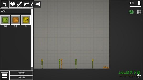 2、进入游戏如图,点击左上角菜单按钮,添加两个物品在地上;