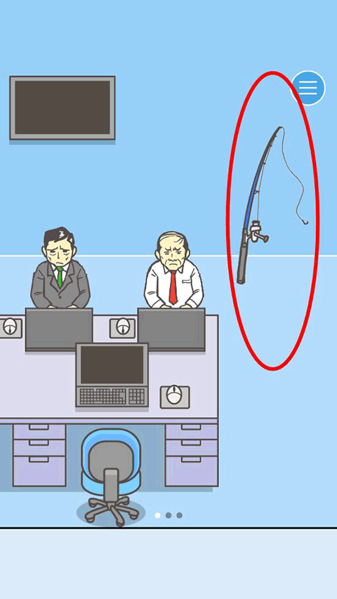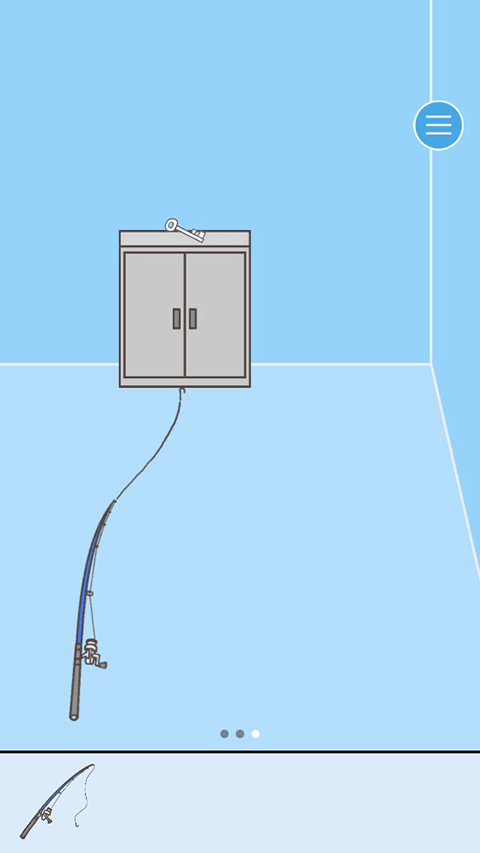把场景移到第三个场景,我们可以看见柜子上有把钥匙,这个时候我们就需要动动我们的小脑袋了,如果这么轻易的就能拿到钥匙,那我们第一个场景拿到的钓竿有什么作用呢?尝试下的把钓竿往钥匙那放了一下,这样就得到钥匙了。如果直接拿钥匙,会掉落到领导布置的陷阱之中。