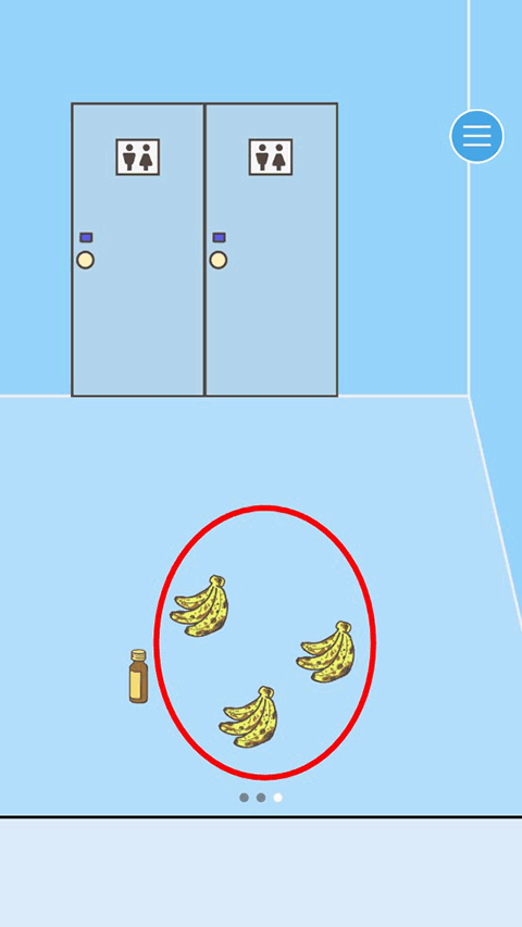 我们先把视角移动到第三场景,通过移动的时候我们发现除了玩家还有三个人而第三个场景有2个卫生间和三个香蕉还有一瓶不知道有什么作用的瓶子,瓶子经测试,点击了它就会让人强制加班,所以我们选择掠过这个道具。
